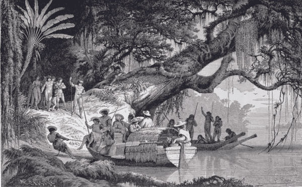 Frans Keller Leuzing ao rio Madeira em 1867. A cena representa o encontro